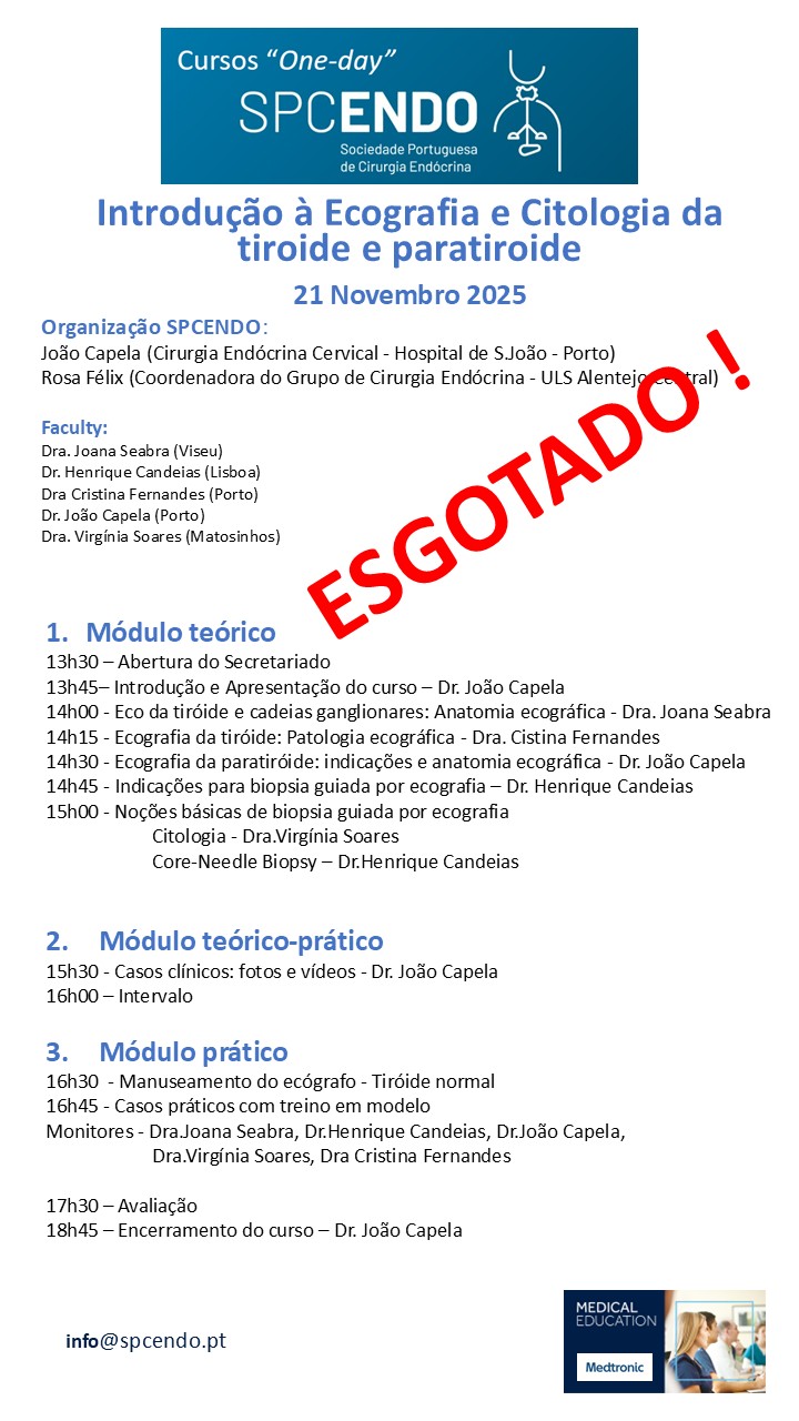 Criada com o objetivo de juntar todos os que se interessam pela disciplina (cirurgiões ou não), melhorar a formação, diagnóstico, tratamento e divulgação da cirurgia Endócrina nacional, a SPCENDO realizou diversos cursos, reuniões científicas e webinars, neste seu primeiro ano de atividade, que culminou neste primeiro Congresso, SPCENDO2025 – A Nova Era.