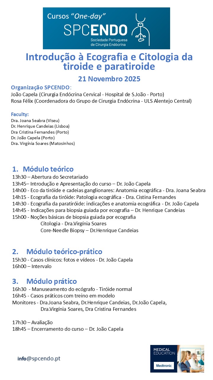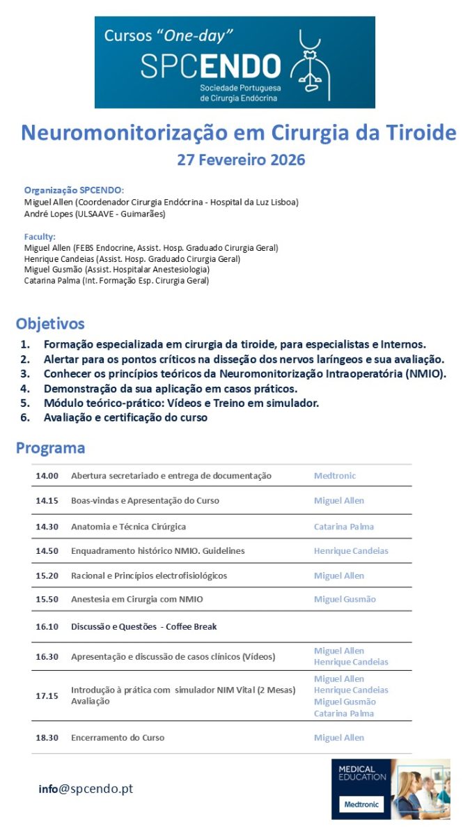 Direção do Curso – Dr. Miguel Allen (Coordenador Cirurgia Endócrina – Hospital da Luz Lisboa)