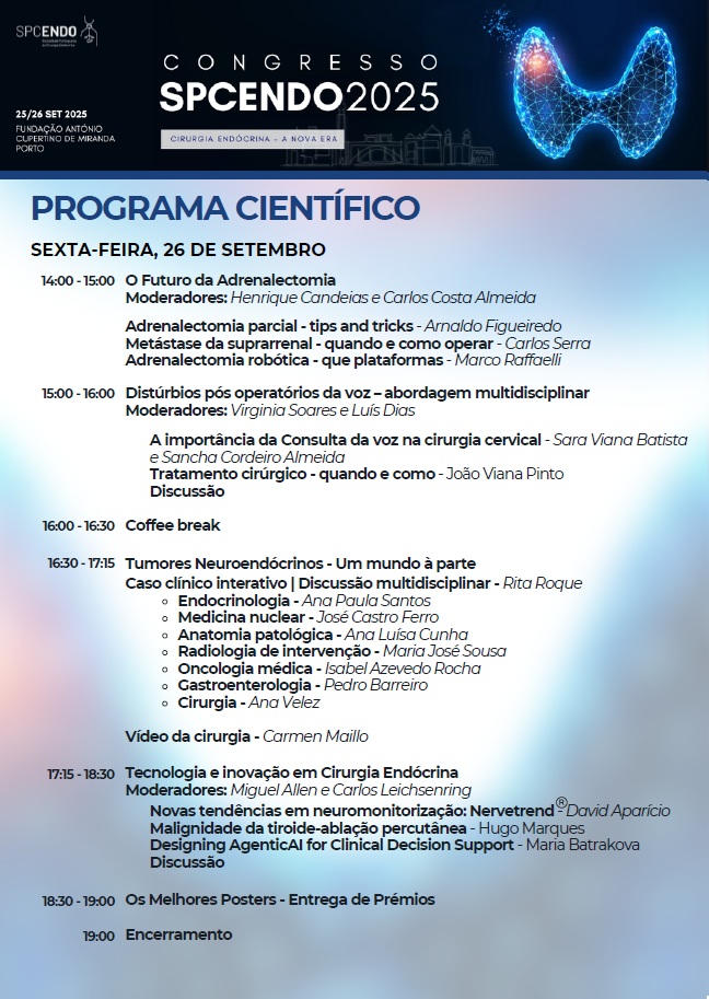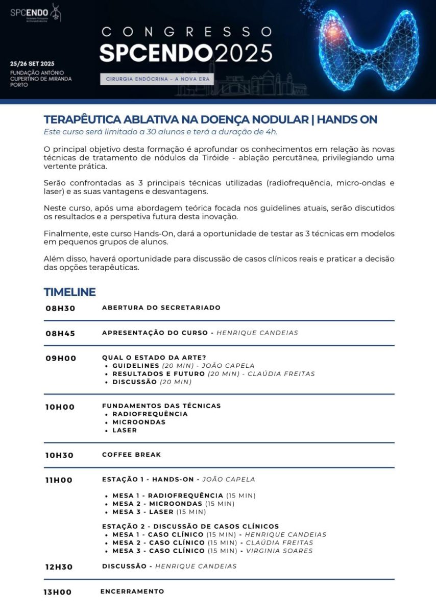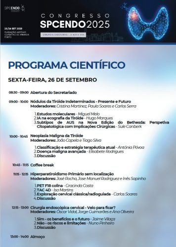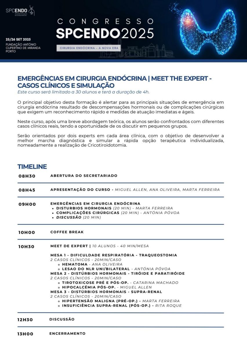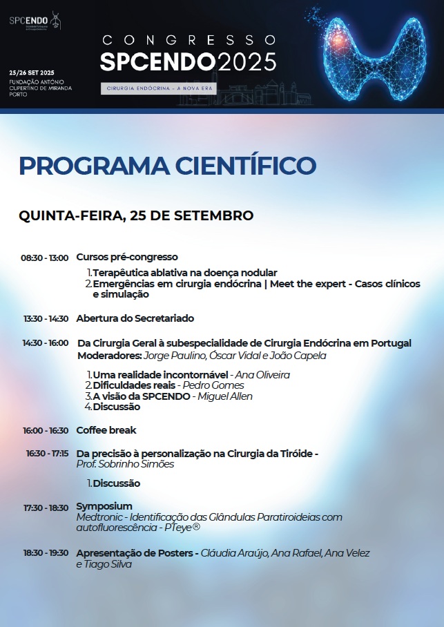 Aqui ficam para memória futura os programas dos Cursos pré-congresso e do Congresso SPCENDO2025 – A nova Era